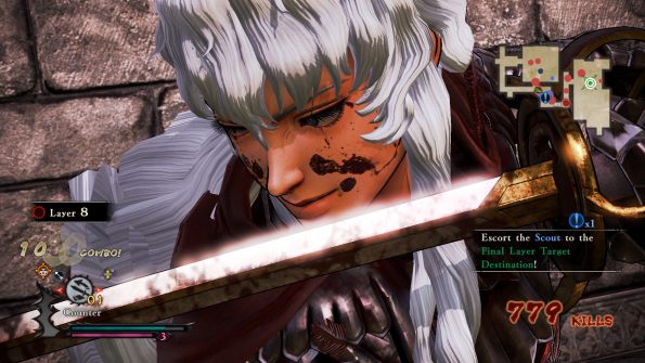 Je vais donc vous résumer brièvement l’histoire pour mettre le jeu en contexte, veuillez m’excuser si jamais cela semble un peu vague mais je vais tenter de ne pas trop en dire. Berserk est l’histoire de Guts, un jeune mercenaire dans un univers médiéval qui va de batailles en batailles s’en réel but car c’est tout ce qu’il sait faire. Il se fait remarquer par l’utilisation d’une épée trop grosse pour lui mais qu’il arrive à manier sans trop de problèmes. Griffith, le second personnage le plus important, dirige un groupe de mercenaires, la Troupe du Faucon (The Band of the Hawk), qui prend rapidement de la renommée et recrute Guts. La première partie du manga, le premier anime et les films sont leur histoire sur les champs de bataille et avec la noblesse puis à la fin tout explose avec l’Éclipse. Ce qui fait apparaître nombreux démons et créatures dans le monde puis Guts devient un chasseur de démons, pas vraiment par choix, dans la prochaine partie de l’histoire et il se fait de nouveaux compagnons.